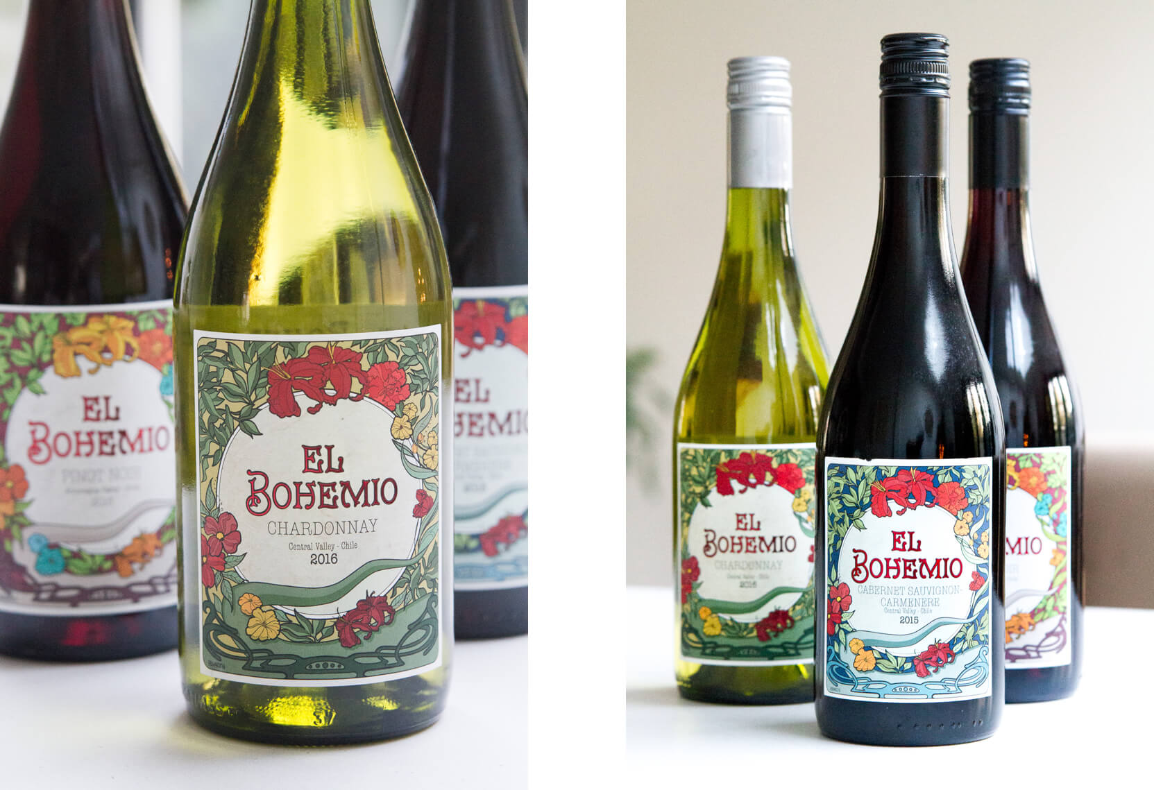 ‘Live free, and make your own rules. Be in touch with nature and each other. Be colorful and original. That is the true spirit of a real bohemio.’ En aan mij de taak om deze wijn een identiteit te geven! Cabernet Sauvignon – Carmenère.. een mond vol. En zo proeft deze zwoele en sappige wijn ook. Vol.. veel.. overdaad.. bloemig.. Iets dat ik in gedachten heb gehouden tijdens het ontwerpen.